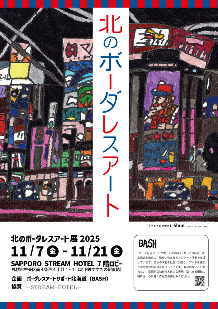 この度、ススキノにいながら北海道の歴史・文化を感じられる客室や、レストランでは道産食材を取り入れたメニューの展開を行っているSAPPORO STREAM HOTEL(札幌市中央区)様と連携した、特別企画「北のボーダレスアート展2025」を開催いたします。