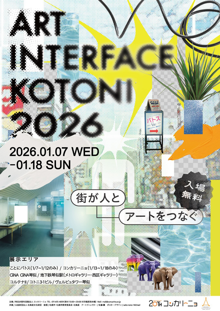 特定非営利活動法人コンカリーニョ(北海道札幌市)は、2026年1月7日(水)から1月18日(日)まで、琴似エリア一帯を舞台にしたアートプロジェクト、「ART INTERFACE KOTONI 2026 ― 街が人とアートをつなぐ」を開催します。